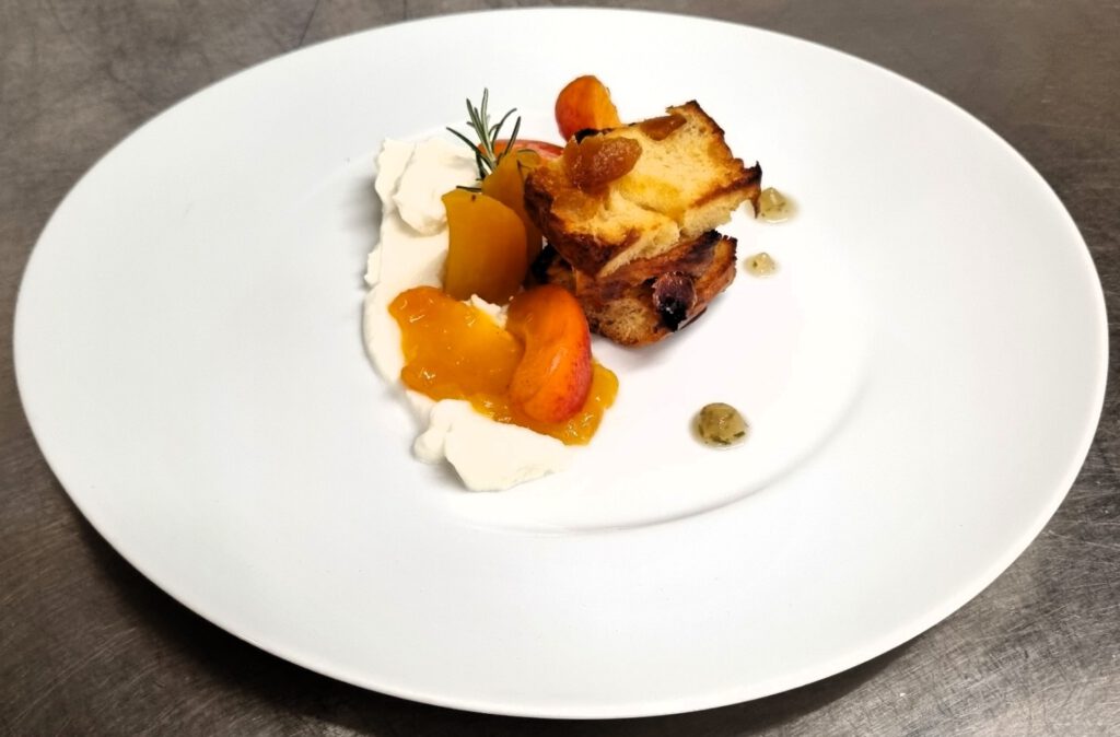 an selbstgemachtem Aprikosenchutney und sautierten Aprikosen